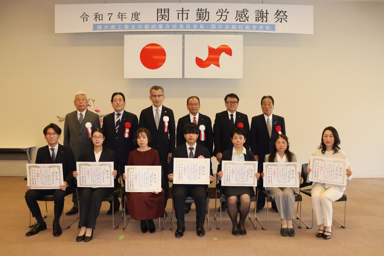関市、関商工会議所、武儀地区商工会協議会主催で、令和7年度関市商工業永年勤続優良従業員表彰が満10年、満20年、満30年、満35年、満40年、満45年及び満50年間勤務者対象に開催されました。